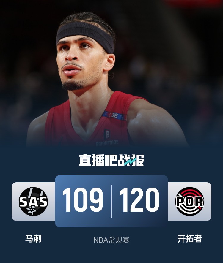 上半场,双方开场短暂相持,开拓者攻防压制轰出17-0的进攻高潮取得领先,次节却突然哑火,尚帕尼连中三分,马刺奋力反击一度追到只差2分,开拓者里突外投拿分及时回暖,半场战罢开拓者54-45领先马刺。下半场,双方继续缠斗,马刺占得先机迫近比分,开拓者连续拿分稳住局势,末节双方争夺陷入白热化,关键时刻开拓者连投带罚拿到7分锁定胜局。最终,开拓者120-109力克马刺。
